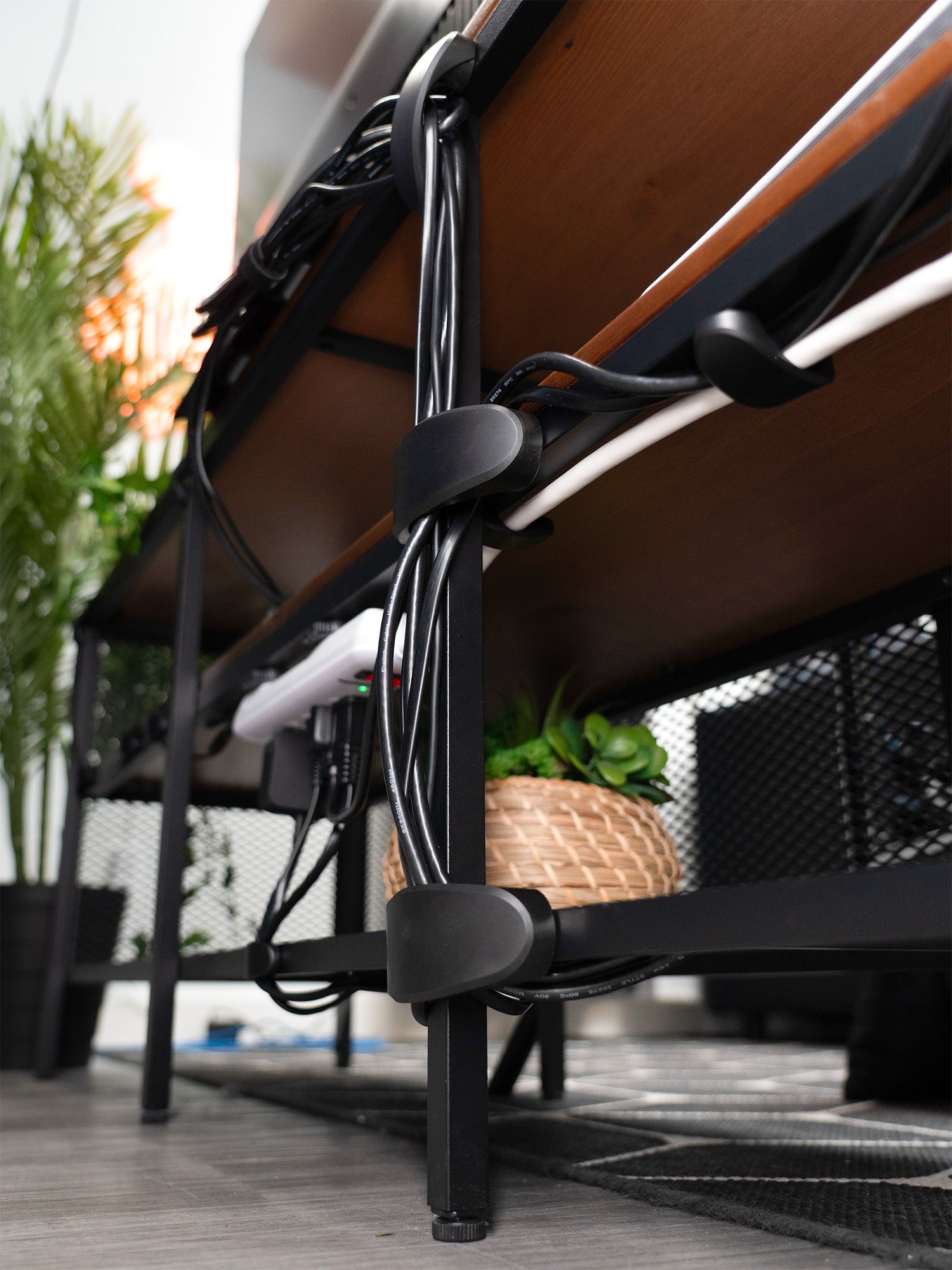 • Supports de serre-câbles magnétiques permettant de fixer des câbles sur des surfaces plus compactes, comme des pieds de bureau ou de table. Vous pouvez également utiliser des supports de serre-câbles pour regrouper les câbles excédentaires.