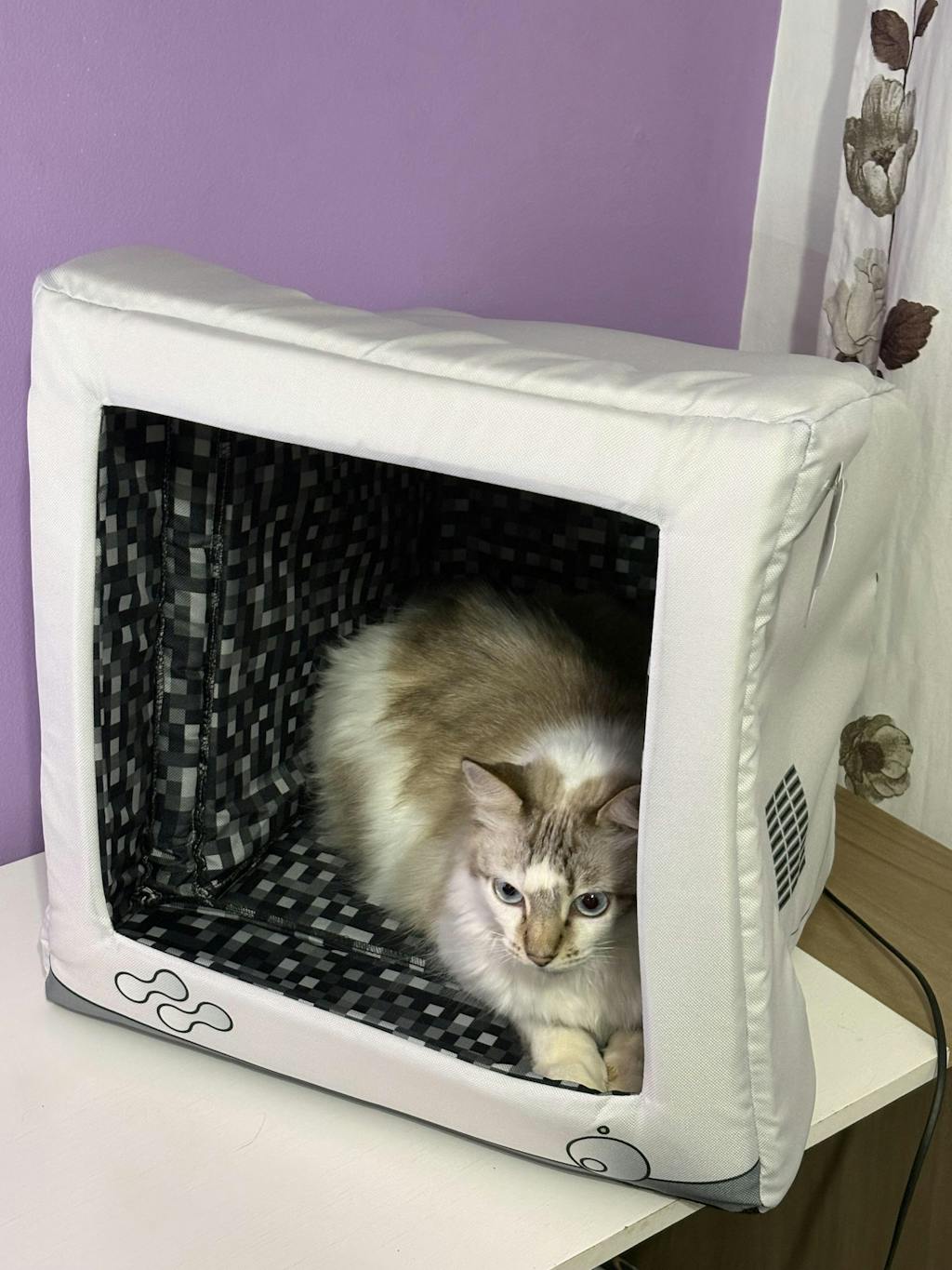 Get your pet off of your setup and into their own! Your furry friend can relive the glory days of the LAN party with this fun and cozy indoor pet cave inspired by the iconic CRT monitors of the past.