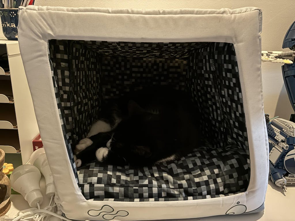 Although our cat is a bit of a free-spirit and refuses to lay down inside of the RMPC - she does seem to love rubbing her face on it! Maybe one day she'll sleep in there.